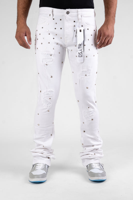 MENS CLASSIC ULTRA STRETCH DENIM -STACKED WHITE STUD DZTR-540