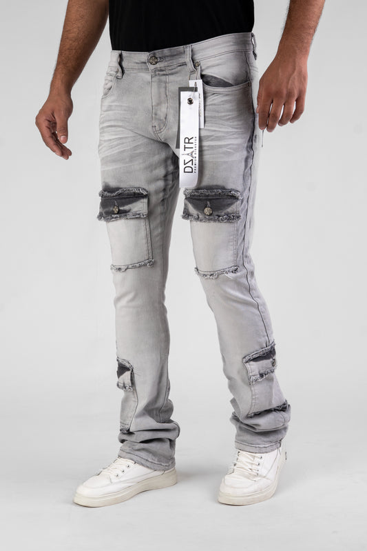 MENS CLASSIC ULTRA STRETCH DENIM - GREY STACKED DZTR-489