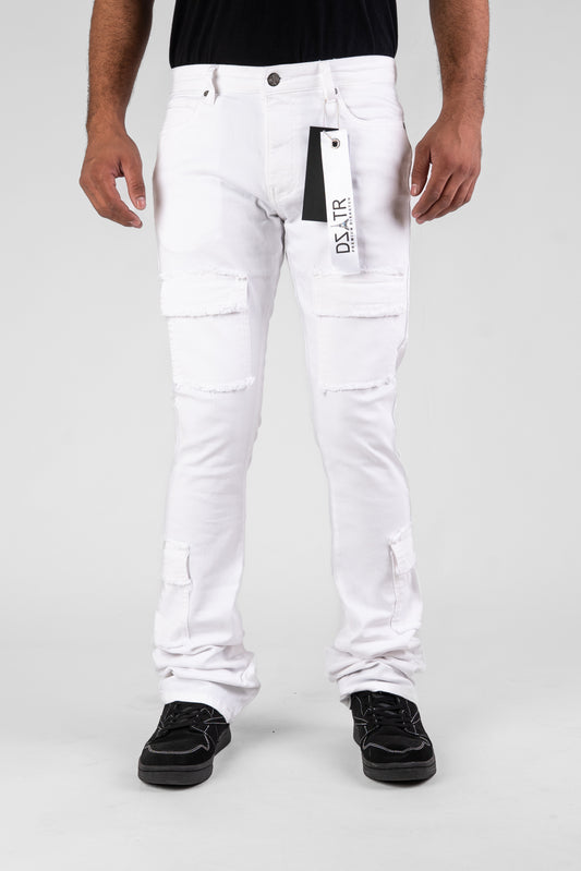 MENS CLASSIC ULTRA STRETCH DENIM - STACKED WHITE DZTR-526