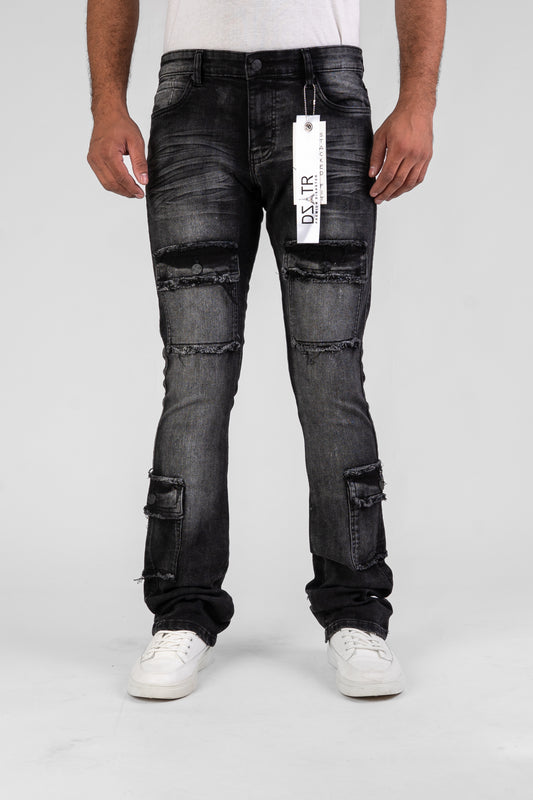 MENS CLASSIC ULTRA STRETCH DENIM - STACKED BLACK WASH DZTR-489
