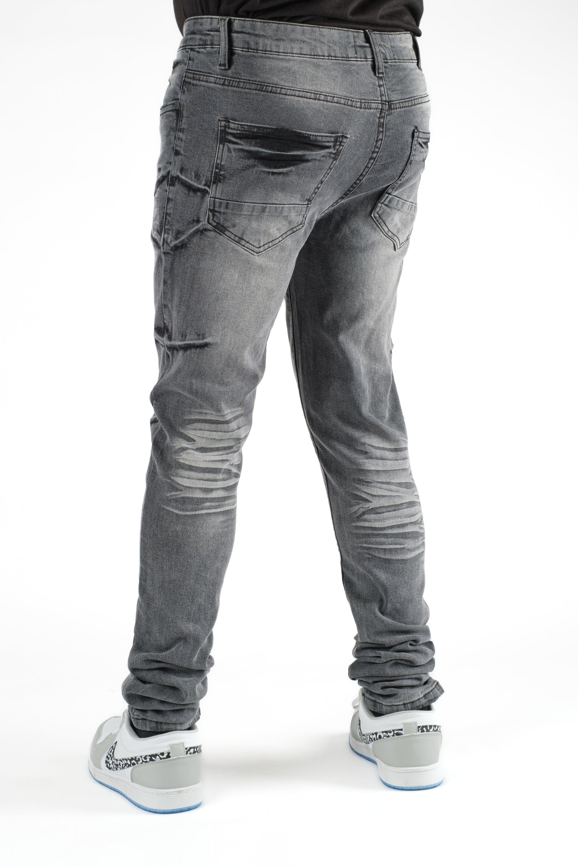 MENS CLASSIC ULTRA STRETCH DENIM - GREY BLACK RIP DZTR-321