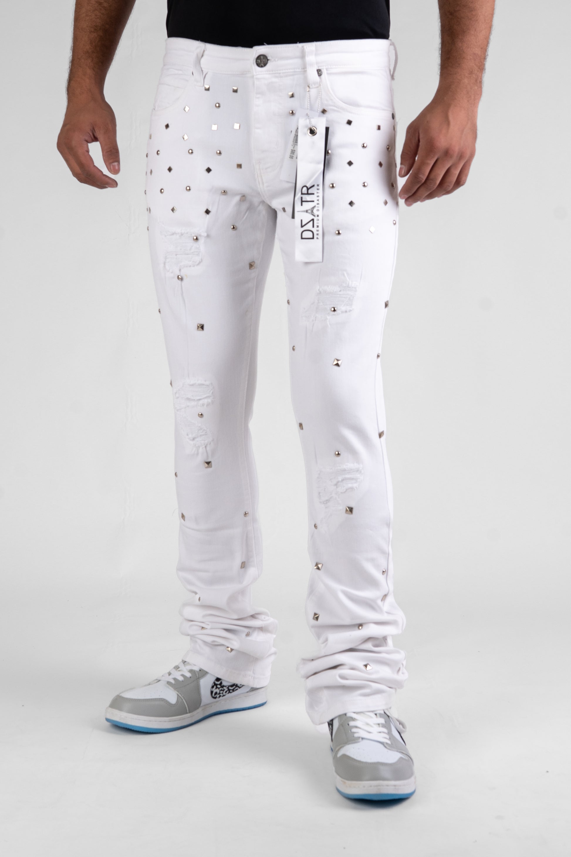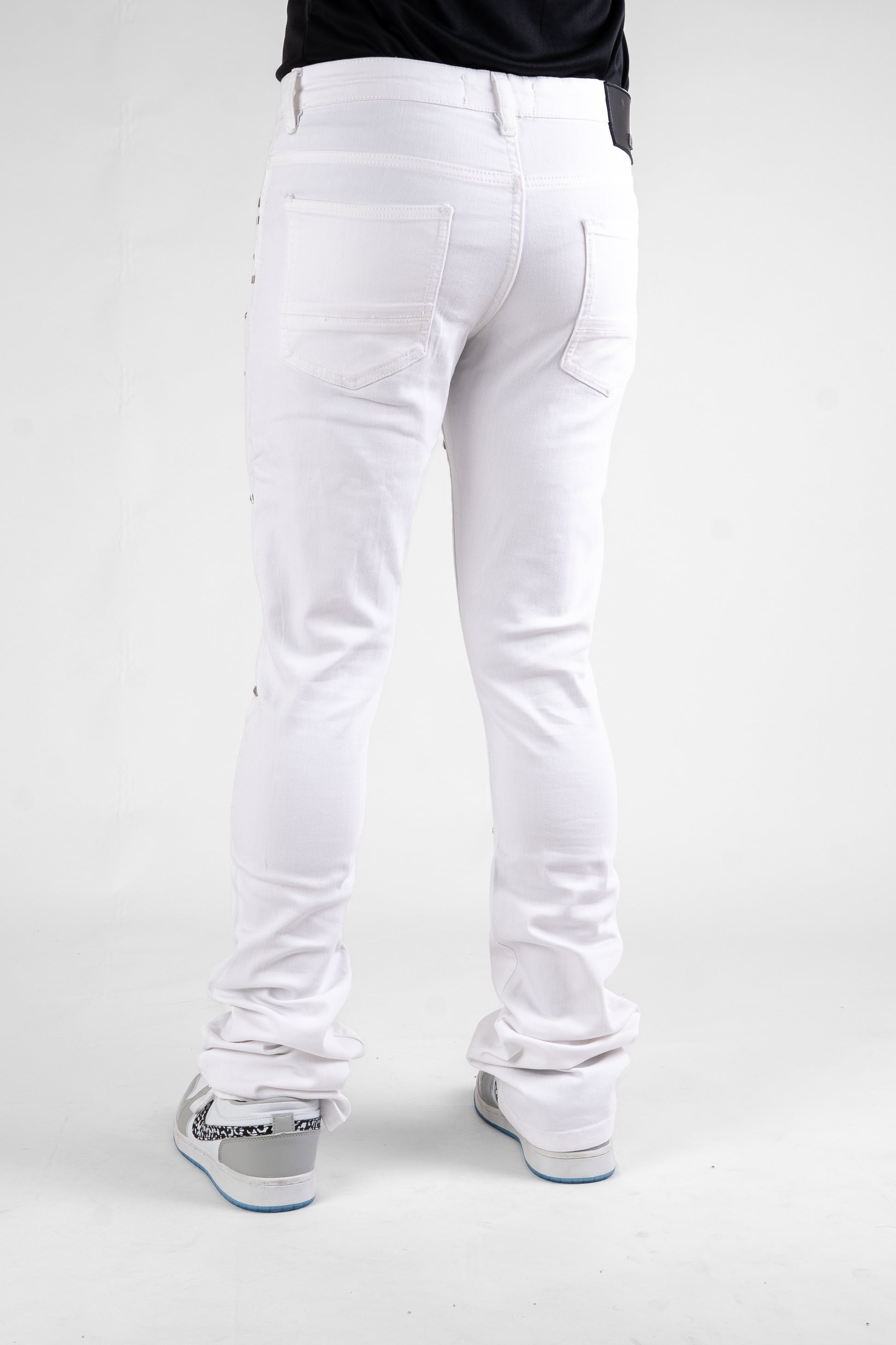 MENS CLASSIC ULTRA STRETCH DENIM -STACKED WHITE STUD DZTR-540